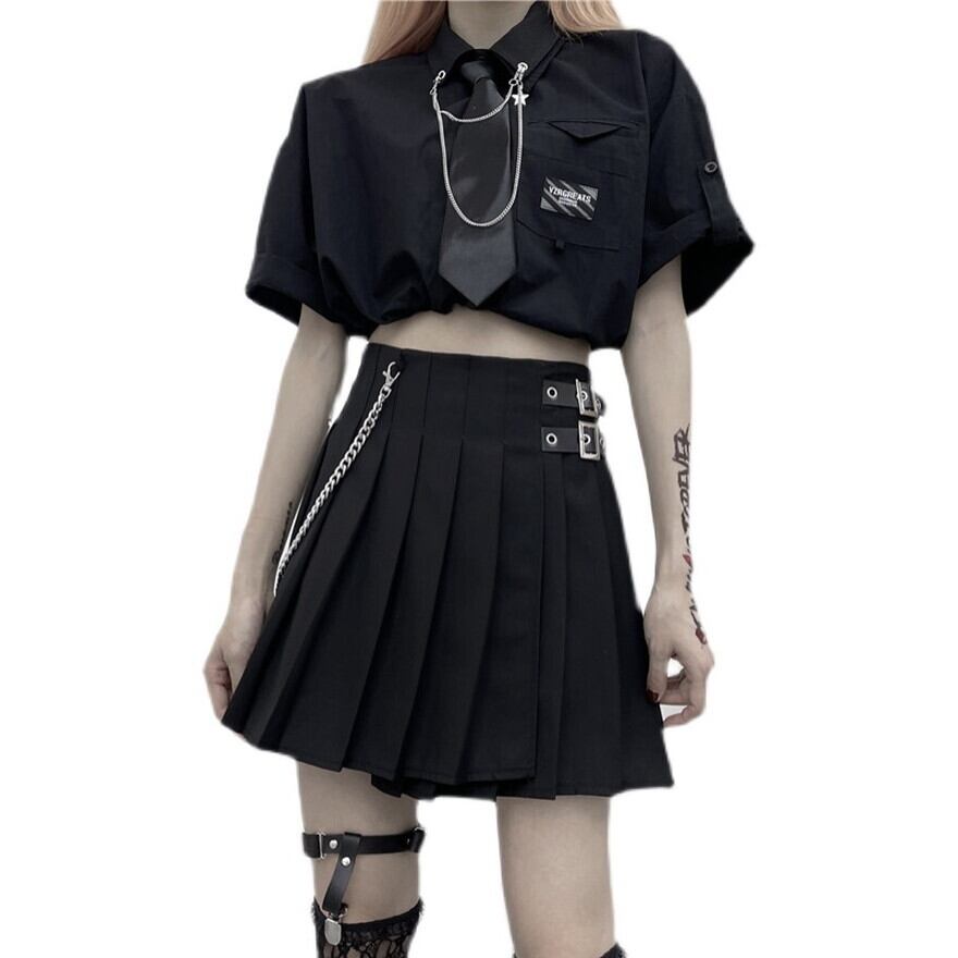 サブカル 服 地雷系 通販 ミニスカ プリーツ アシンメトリー Aライン 闇かわいい バンギャ