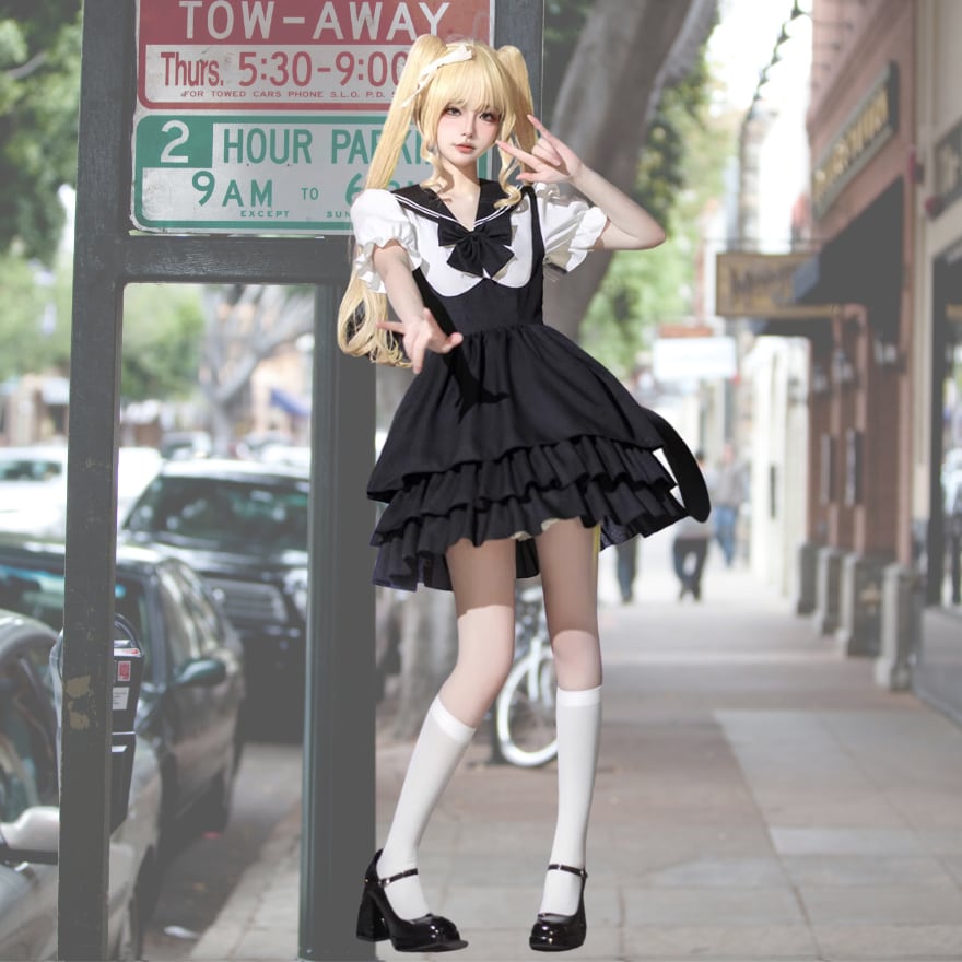サブカル 服 地雷系 通販 フェイクツーピース 制服 セーラー服 リボン ガーリー 甘め ロマンティック ゆめかわ