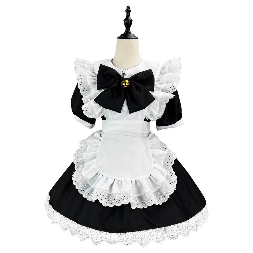 セット内容はワンピ、エプロン、リボン、カチューシャが含まれます。