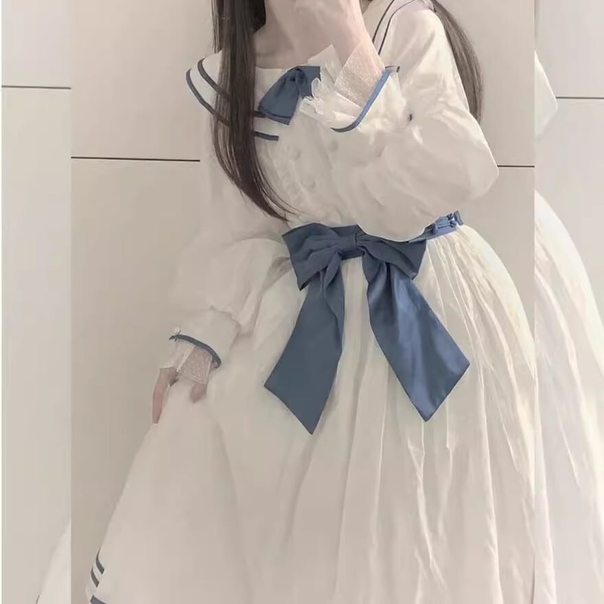 ネイビーのリボンがかわいいレトロなフレンチスタイルのワンピです。