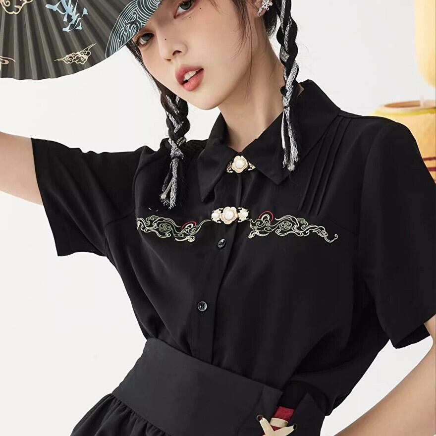 サブカル 服 地雷系 通販 ろりーた 半袖シャツ チャイナ風 刺繍 個性的 ロマンティック ゆめかわ