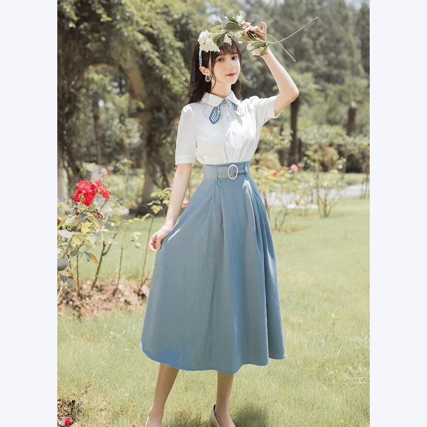 Sサイズ シャツ 着丈55 胸囲 90 肩幅30 袖丈25 スカート 着丈72 ウエスト64