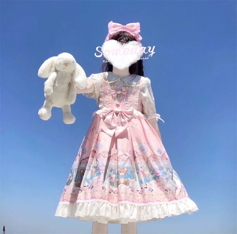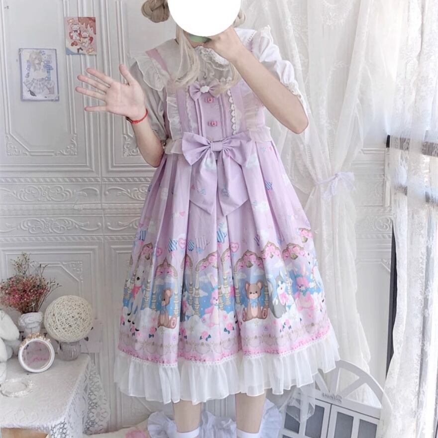 サブカル 服 地雷系 通販 スイートロリータ JSK パステルカラー ウエストリボン アニマルプリント柄 フリル ガーリー 甘め ロマンティック ゆめかわ
