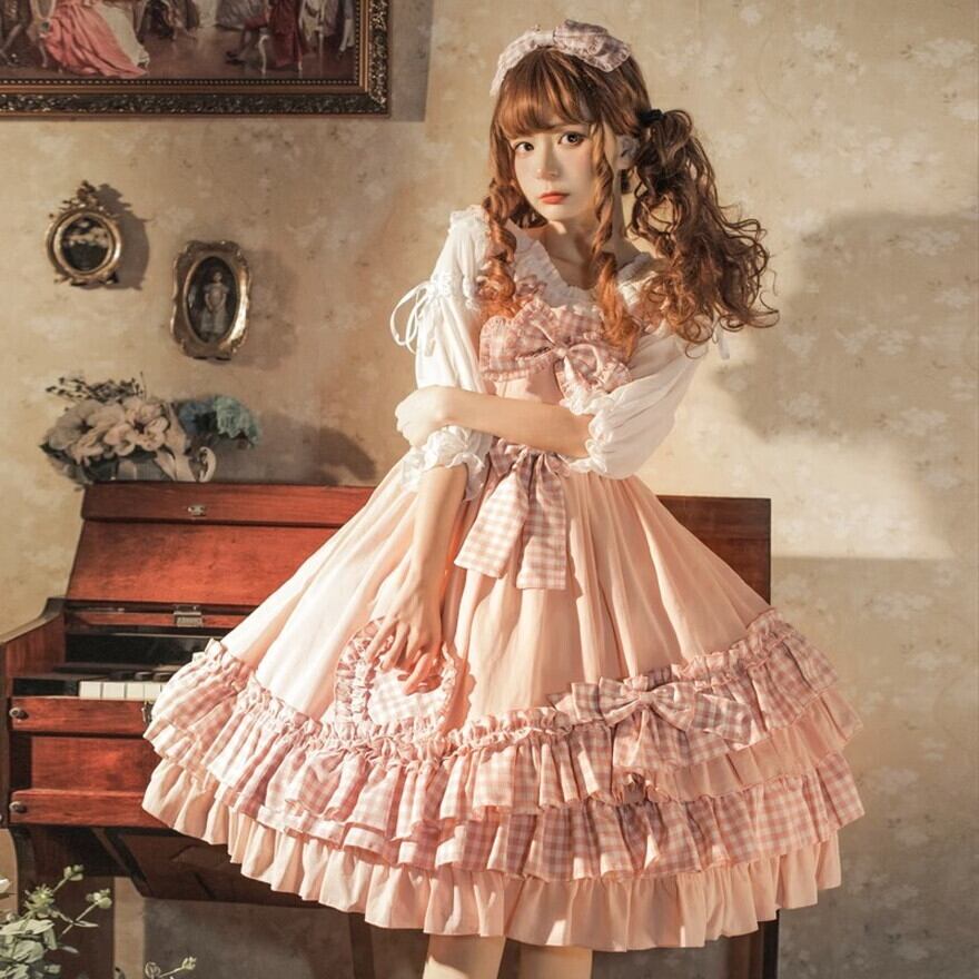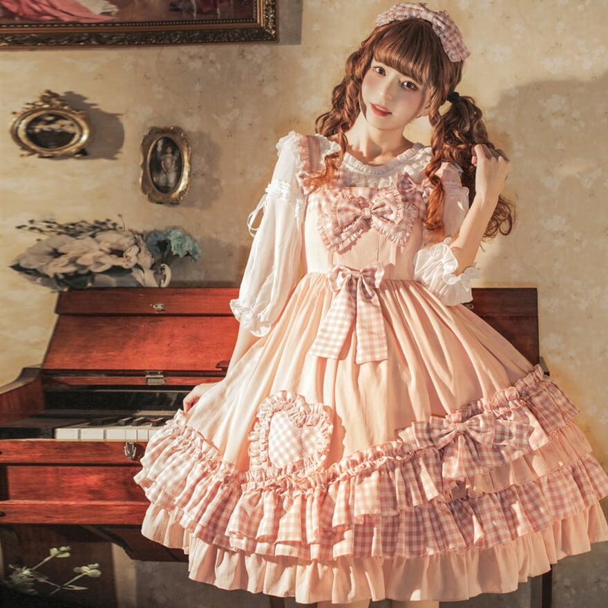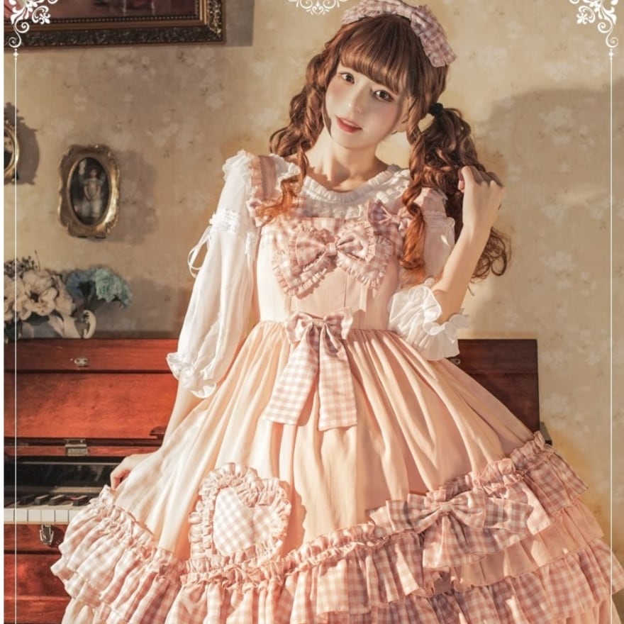 レトロなシルエットにチェック柄リボンとフリルがかわいいクラロリジャンパースカートです