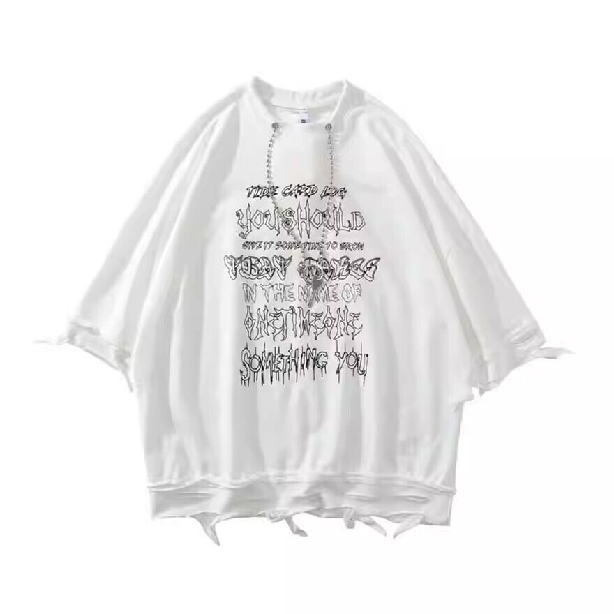 クラッシュダメージ加工のストリート系ユニセックスTシャツです