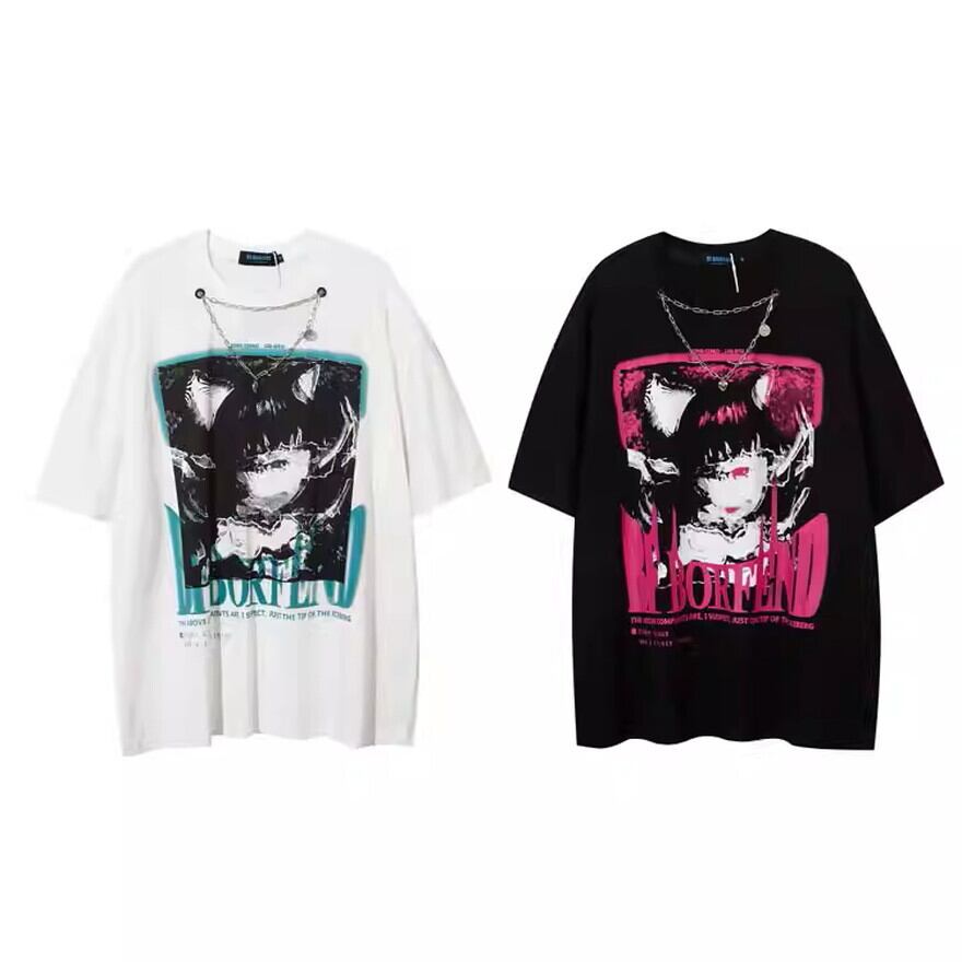 サブカル 服 地雷系 通販 Tシャツ チェーン付き 悪魔プリント柄 ユニセックス 闇かわいい バンギャ