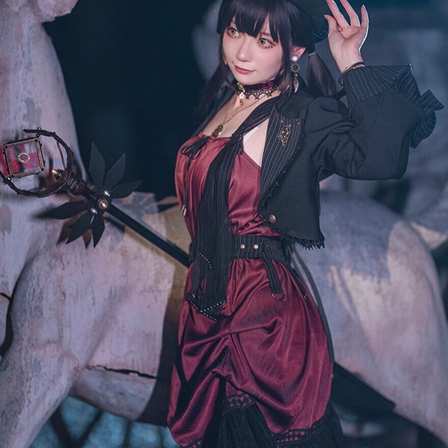 ワインレッドがおしゃれなスチームパンクワンピースです。