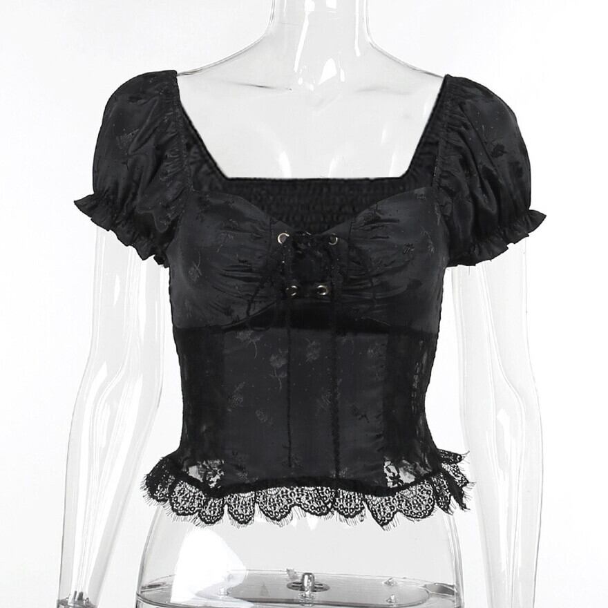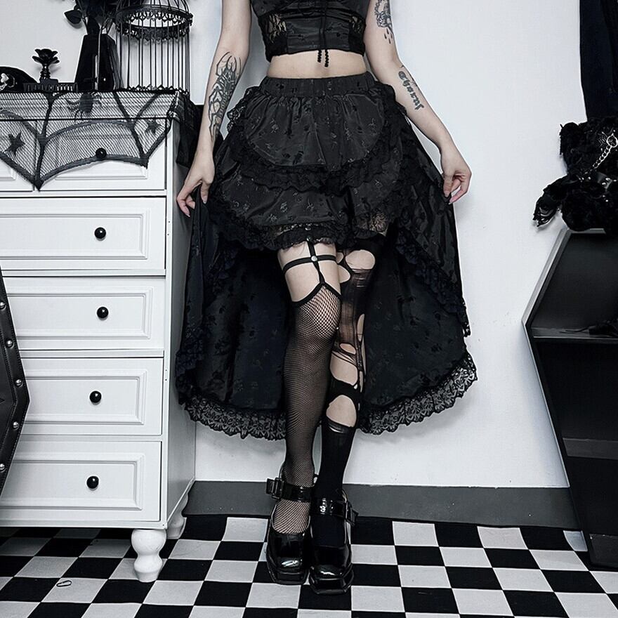 サブカル 服 地雷系 通販 半袖シャツ スカート セットアップ パフスリーブ レース ロング丈 大人ゴシック ゴスロリ 闇かわいい バンギャ