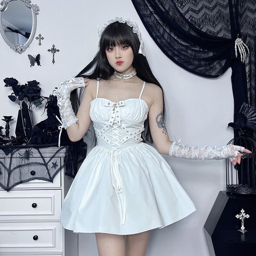 サブカル 服 地雷系 通販 ワンピース チューブトップ ミニ丈 編み上げ 黒 白 ゴスロリ 闇かわいい 闇かわいい バンギャ