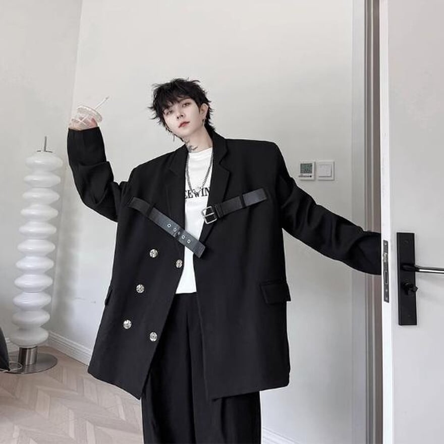 サブカル 服 地雷系 通販 メンズ ジャケット ストラップベルト パッド入り キッチリ感 かっこいい クール キレカジ イケメン