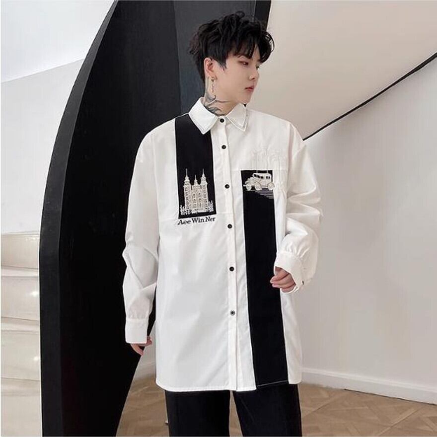 サブカル 服 地雷系 通販 シャツ 長袖 モノトーン 刺繍 きれいめ かっこいい クール キレカジ イケメン