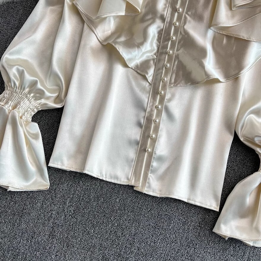 大人かわいい上品なトランペットスリーブのブラウスです。