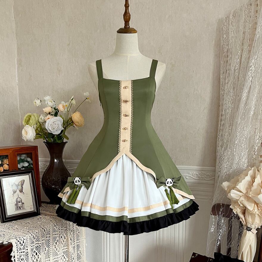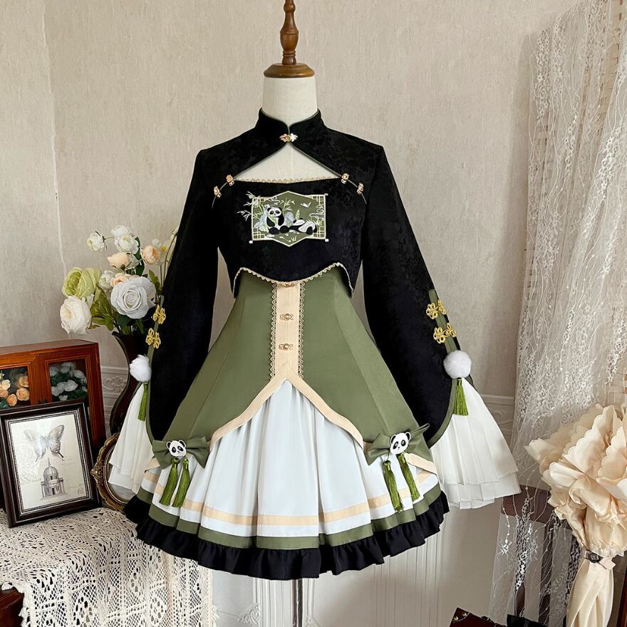 サブカル 服 地雷系 通販 ハロウィン 学園祭 イベント ステージ衣装 かわいい パンダ柄 華ロリ セットアップ ボレロ ジャンパースカート バルーンスリーブ タッセル付き ロマンティック ゆめかわ サブカル