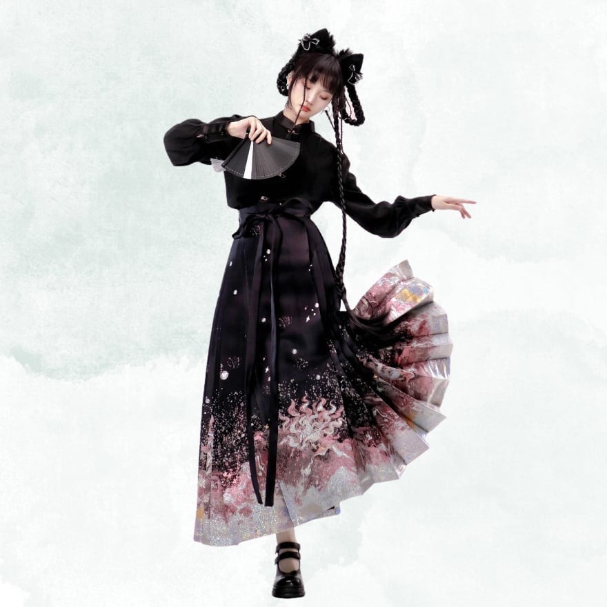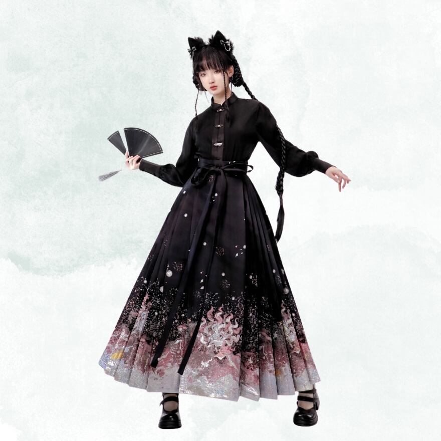 サブカル 服 地雷系 通販 華ロリ チャイナ風 ロングスカート プリーツ レトロ 大人きれいめ 甘め ロマンティック ゆめかわ ろりーた 服
