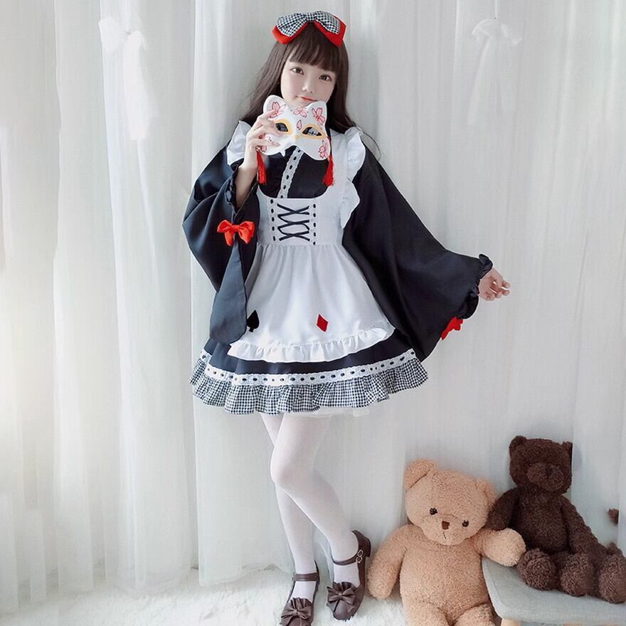 サブカル 服 地雷系 通販 和ロリ 4点セット メイド服 ハロウィン イベント衣装 コスプレ ガーリー 甘め ロマンティック ゆめかわ ろりーた 服