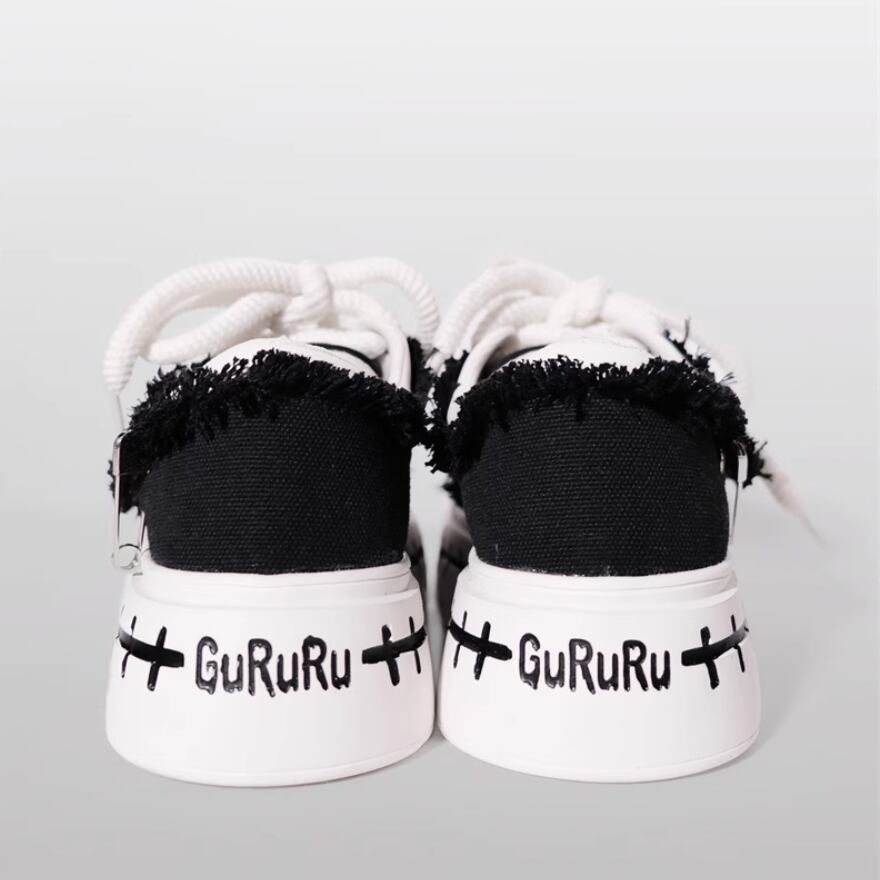サブカル 服 地雷系 通販 キャンバスシューズ GURURUオリジナル おばけ ヒール高4.5cm 闇かわいい バンギャ