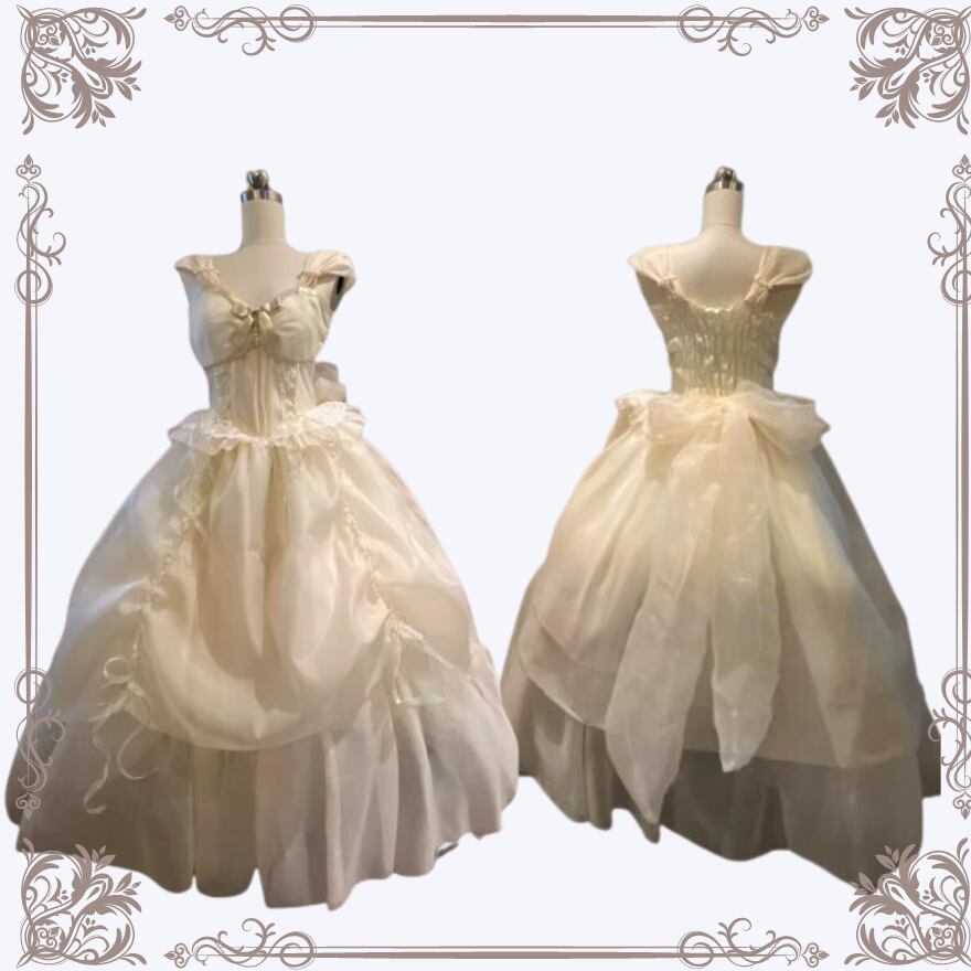 Dressyで高見えなホワイトロリータのドレスにカチューシャ、ロンググローブの豪華3点セットです。