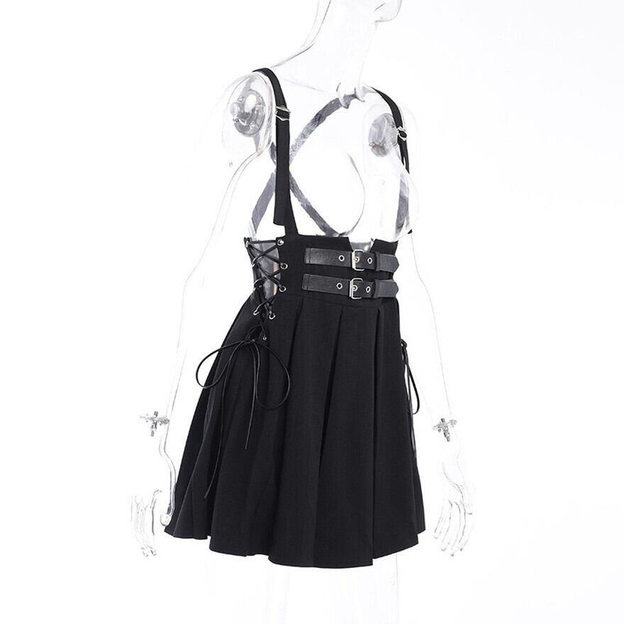 サブカル 服 地雷系 通販 サスペンダースカート レースアップ プリーツスカート 闇かわいい バンギャ
