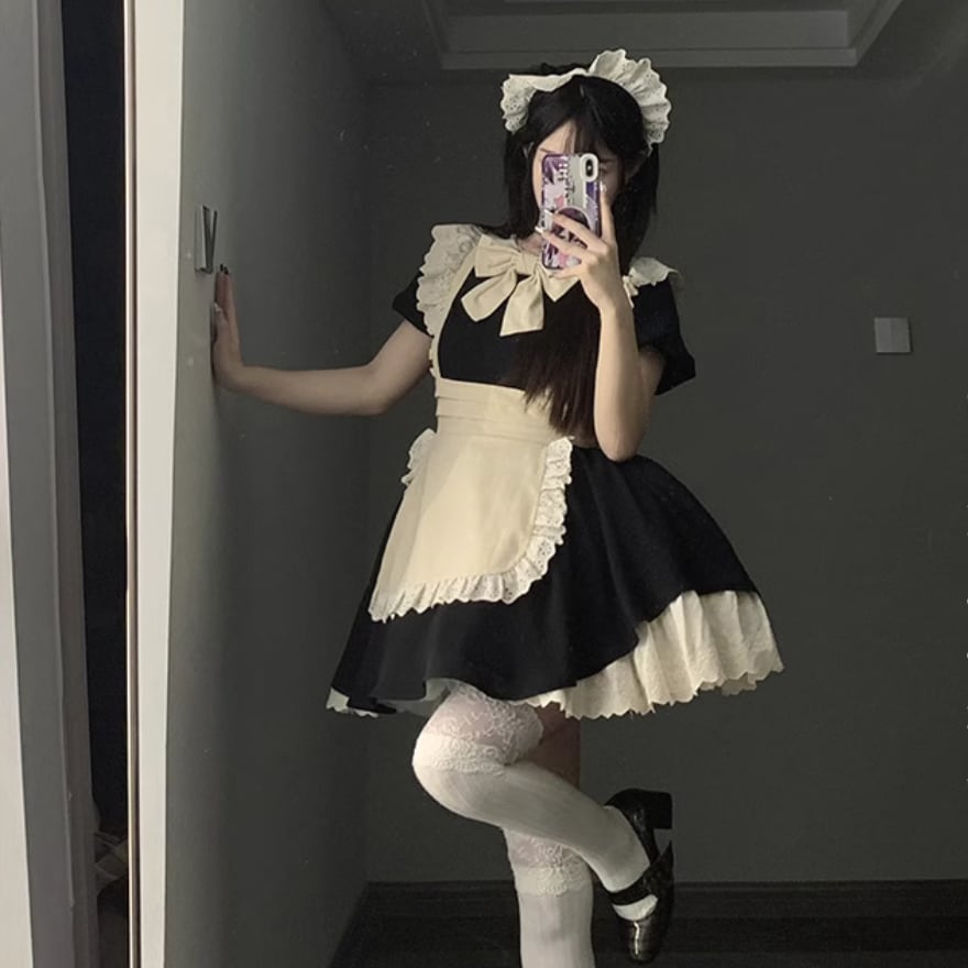 サブカル 服 地雷系 通販メイド服 ミニ丈 エプロン ゴシック クラシカル ガーリー 甘め量産型 ろりぃた ロリィタ 服