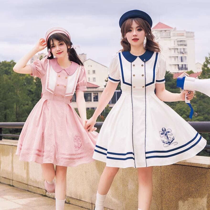 ネイビールックの碇(イカリ)刺繍がポイントのストライプ柄ワンピースです