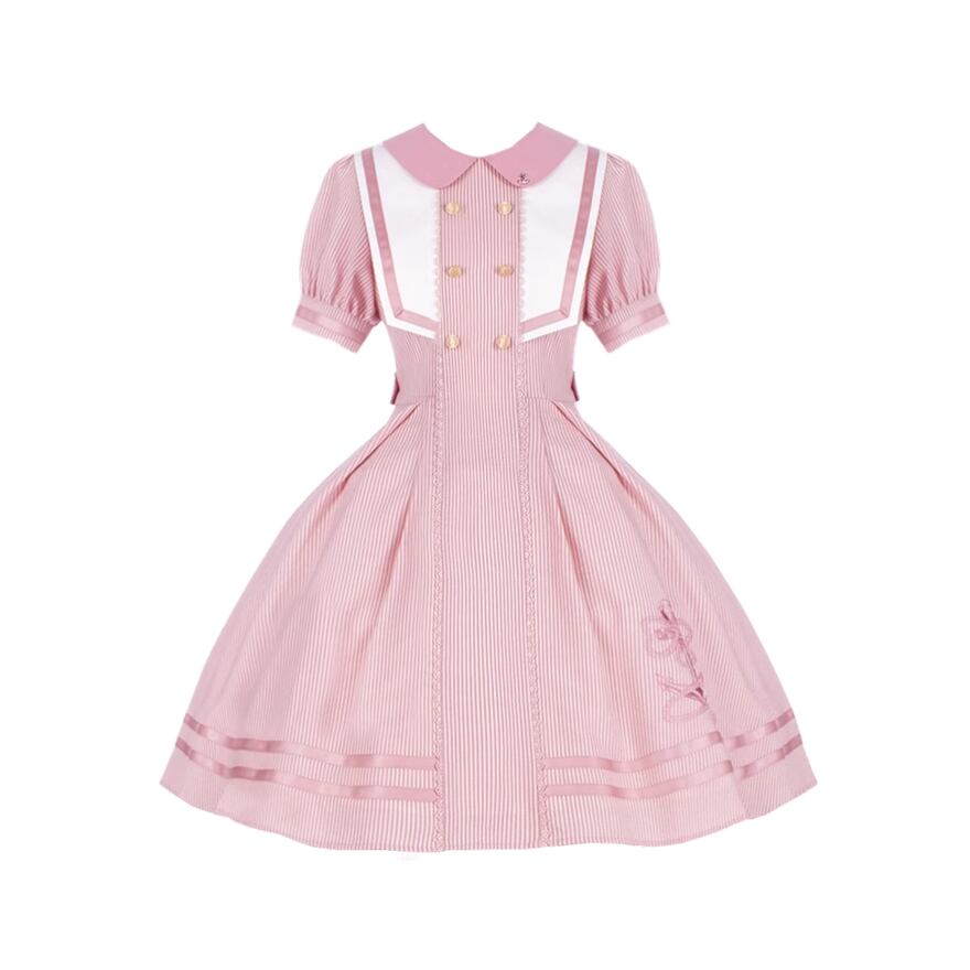 サブカル 服 地雷系 通販クラロリ ワンピース エレガント ストライプ柄 ガーリー 甘め量産型 ろりぃた ロリィタ 服