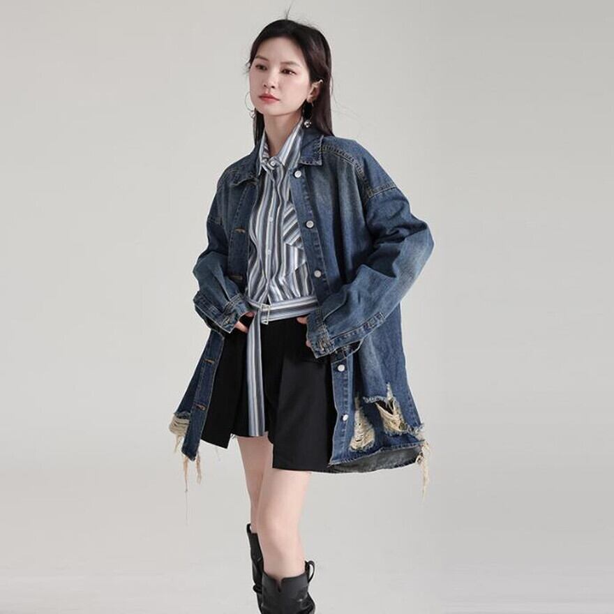 サブカル 服 地雷系 通販 ジャケット クラッシュダメージ デニム 大人かわいい キレカジ モード服 闇かわいい かっこいい ストリート系