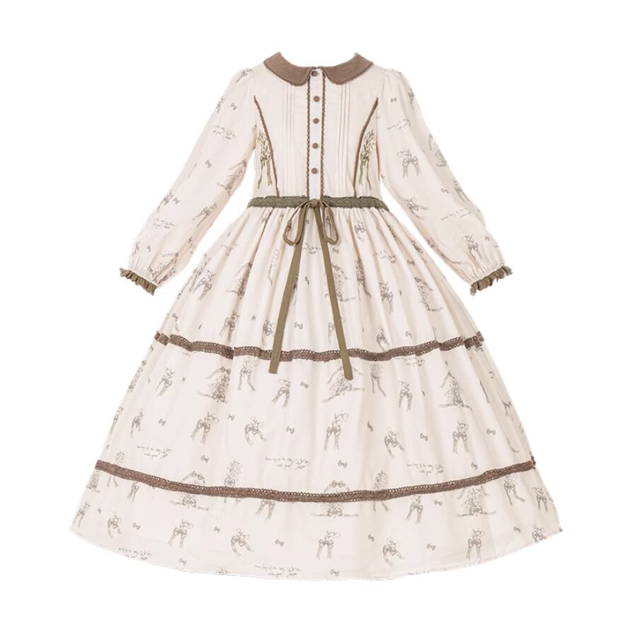 スズラン刺繍の前身頃にピンタック入りのレトロなロリィタワンピースです。