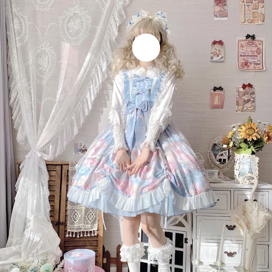 サブカル 服 地雷系 通販 甘ロリ ジャンパースカート パステルカラー フリル リボン ゆめかわ ロリィタ ガーリー ストリート系量産型