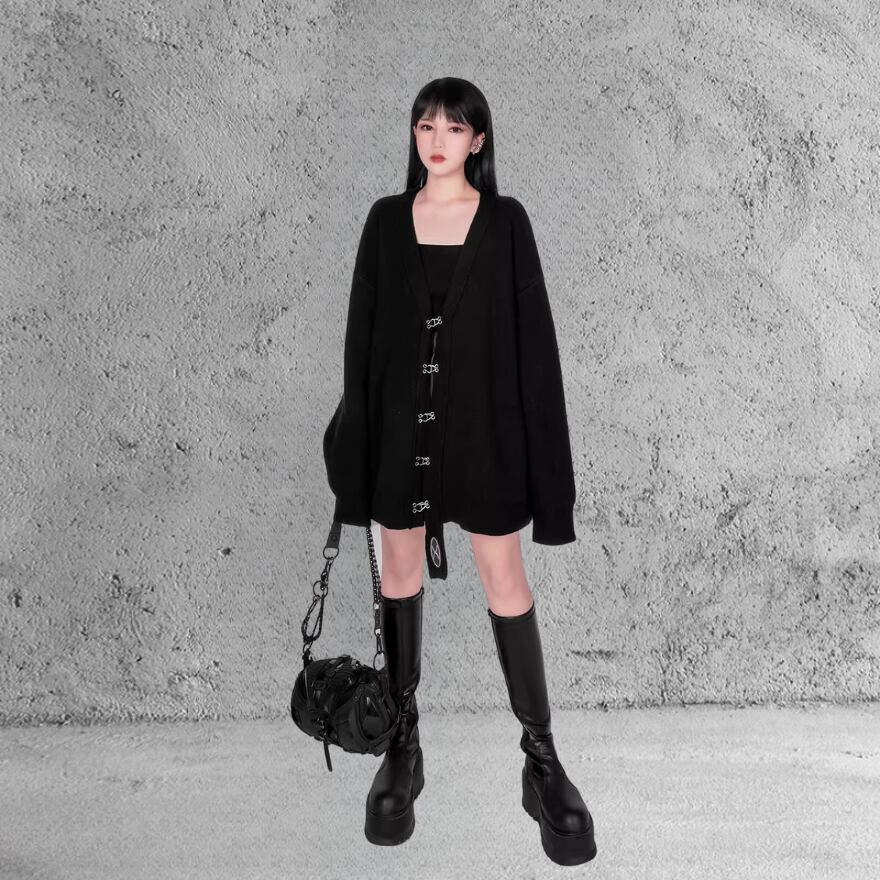 サブカル 服 地雷系 通販 カーディガン バックロゴ 刺繍 ダーク ゴシック BADロゴ 闇かわいい バンギャ