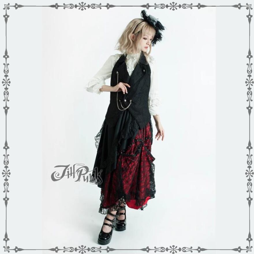 サブカル 服 地雷系 通販 ベスト 英国風 チェーン ゴシック カービングレース 闇かわいい 闇かわいい バンギャ