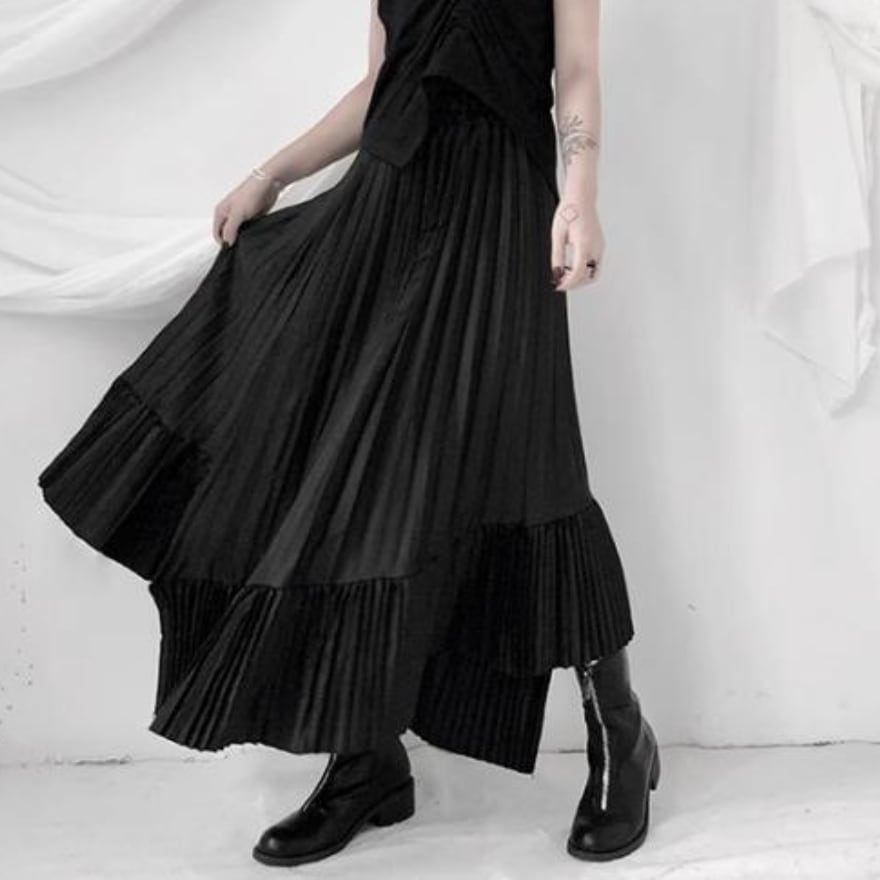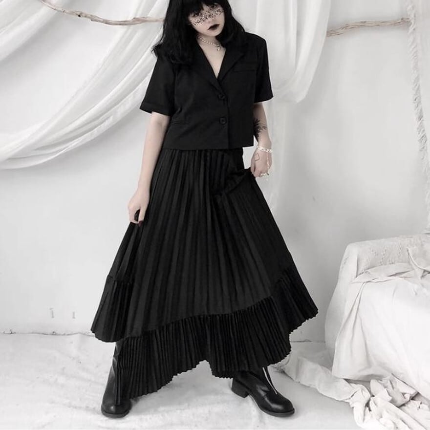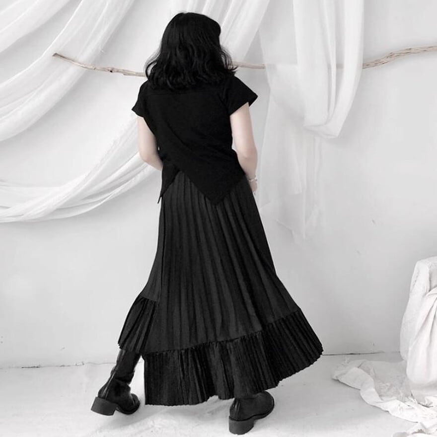 サブカル 服 地雷系 通販 スカート プリーツスカート Aライン ロング丈 アシンメトリー 山本耀司風 大人ゴシック 闇かわいい 闇かわいい バンギャ