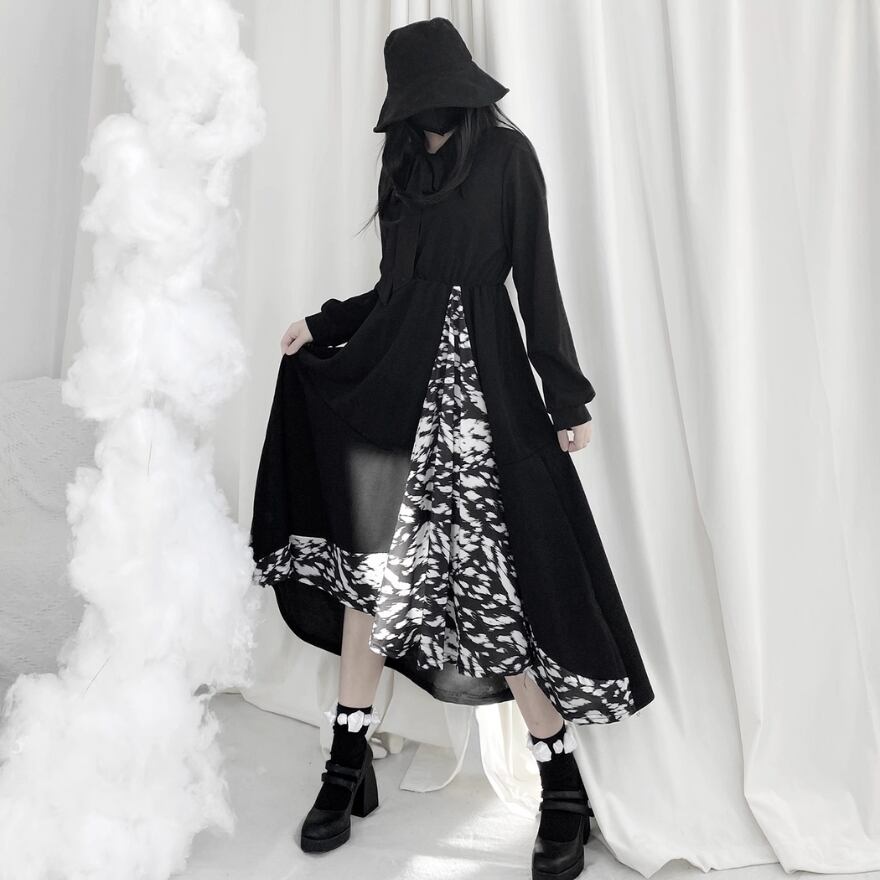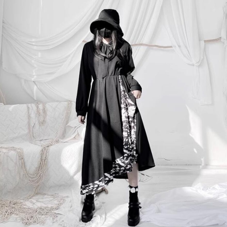 サブカル 服 地雷系 通販 ワンピース Aライン アシンメトリー ヘム丈 スカート 山本耀司風 大人ゴシック 闇かわいい 闇かわいい バンギャ