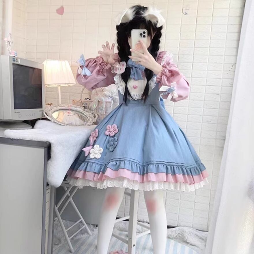 サブカル 服 地雷系 通販 スイートロリータ セットアップ ブラウス ジャンパースカート フリル バックリボン 甘い ロマンティック ゆめかわ ロリィタ lolita
