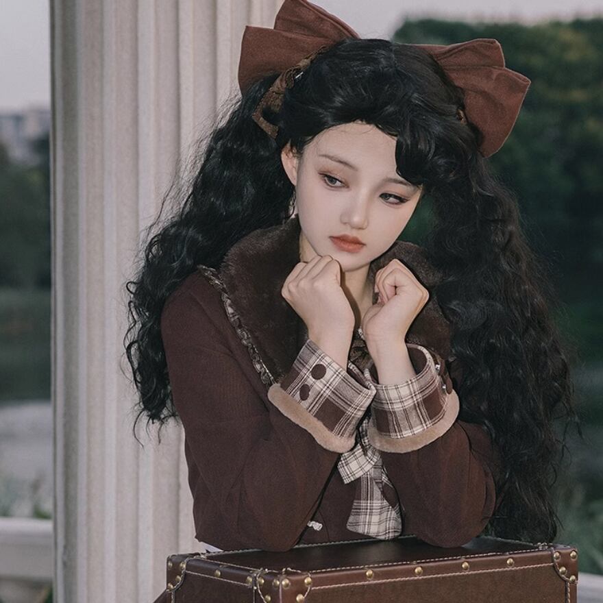 サブカル 服 地雷系 通販 11月11日出荷 クラロリ セットアップ ジャケット スカート チェック柄 リボン レトロ ガーリー 大人ゴシック