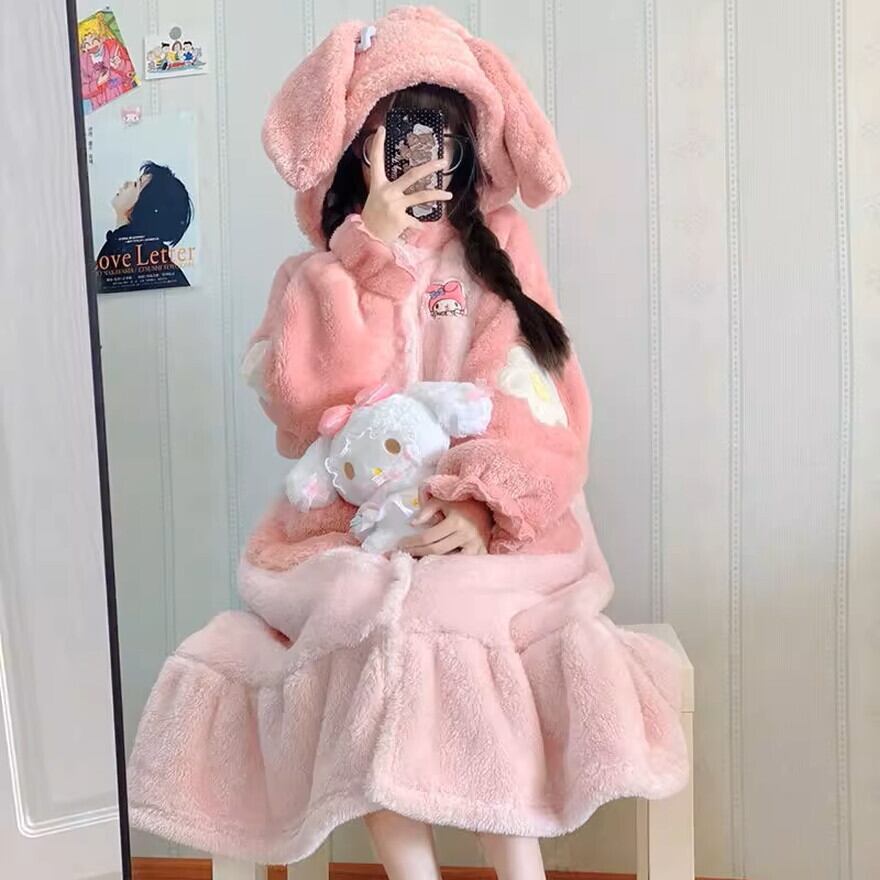 ふわふわもふもふで温かいキュートなアニマルフードの寝間着です