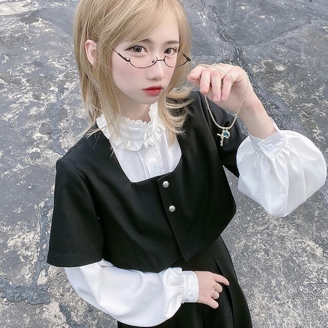 サブカル 服 地雷系 通販 ジャケット ショート丈 スクエアデコルテ レトロ ガーリー 甘め ロマンティック ゆめかわ ロリィタ lolita