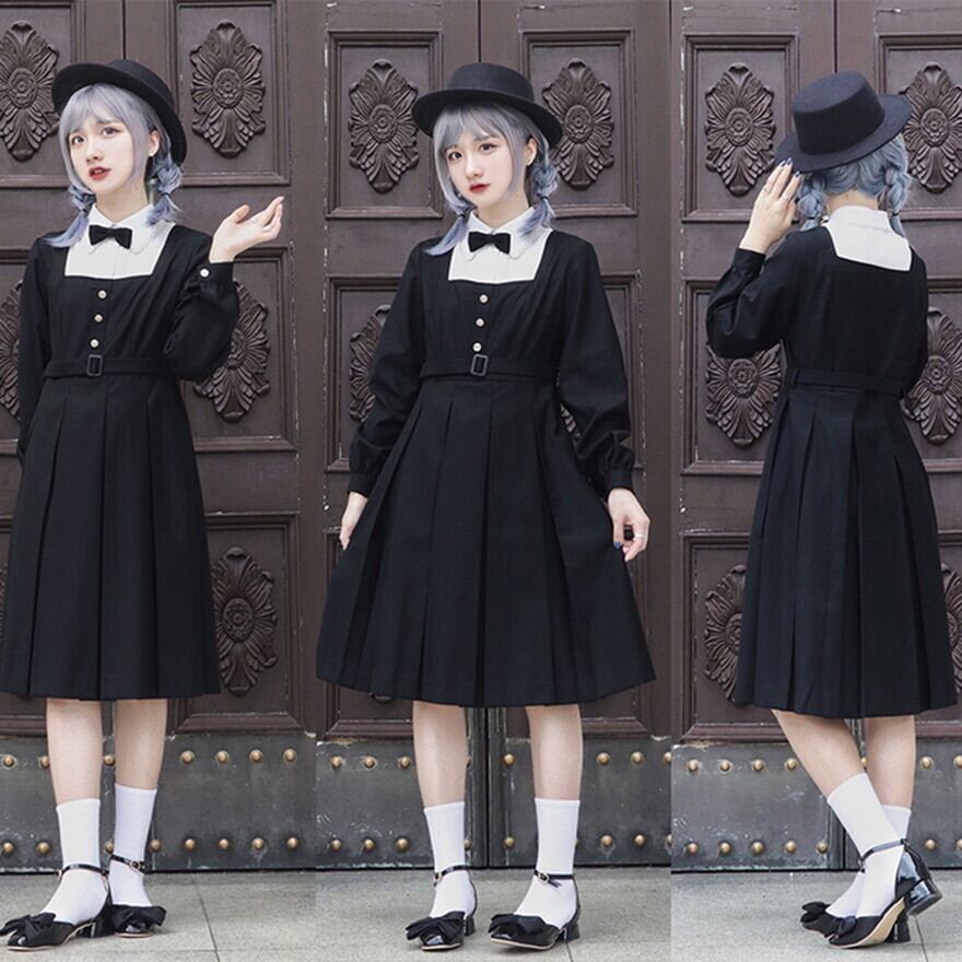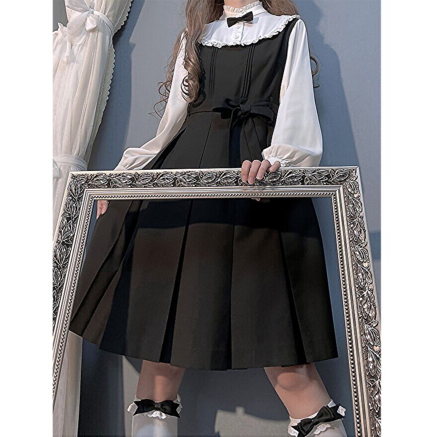 サブカル 服 地雷系 通販 ワンピース スクエア 蝶ネクタイ フリンジ ガーリー 甘め ロマンティック ゆめかわ ロリィタ lolita
