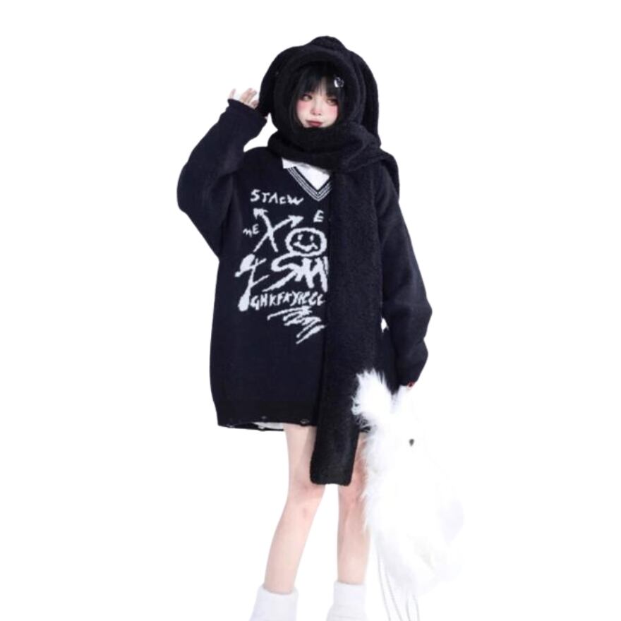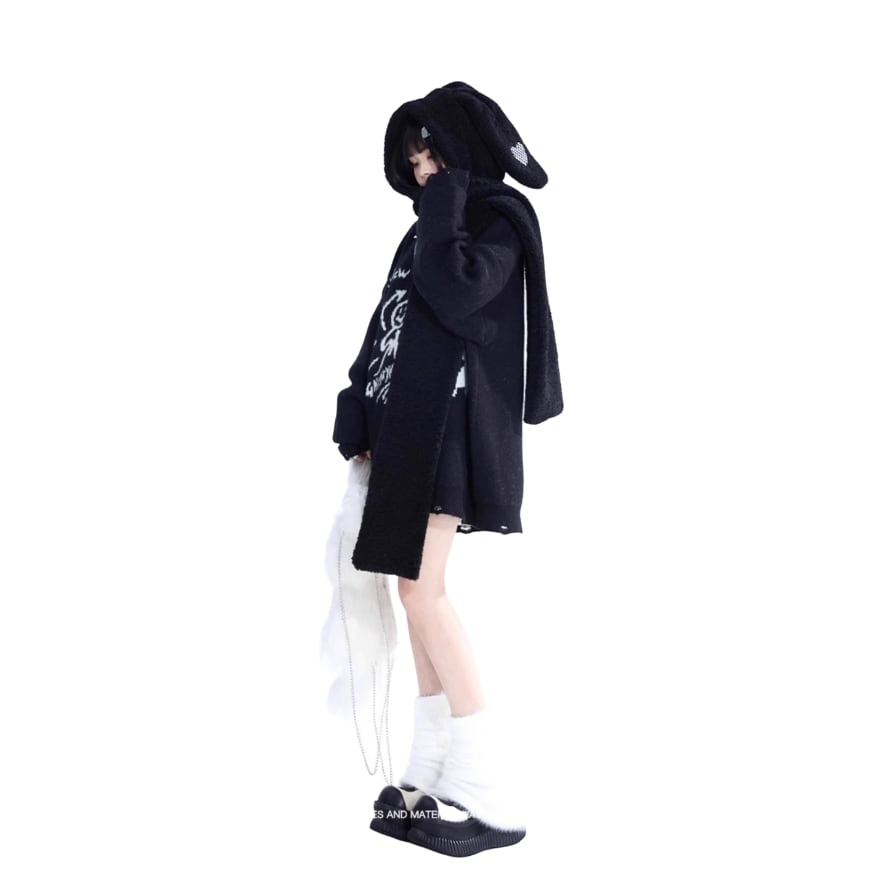 サブカル 服 地雷系 通販 セミロリ ソフトロリータ もふもふ ふかふか 黒うさぎ耳 帽子 JK量産型