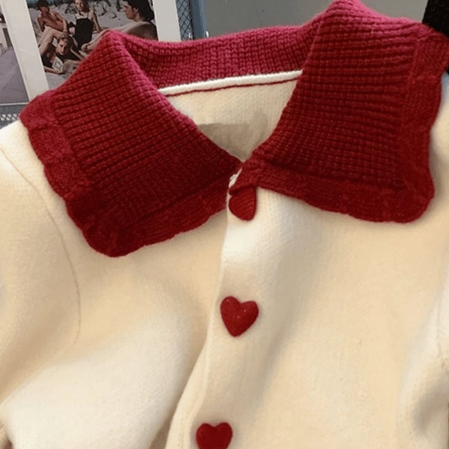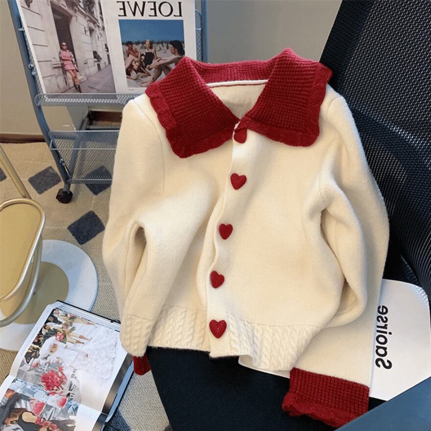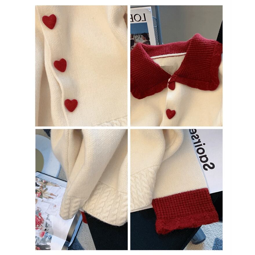 ハートのボタンがチャームポイントのクリスマスにぴったりなニットです。