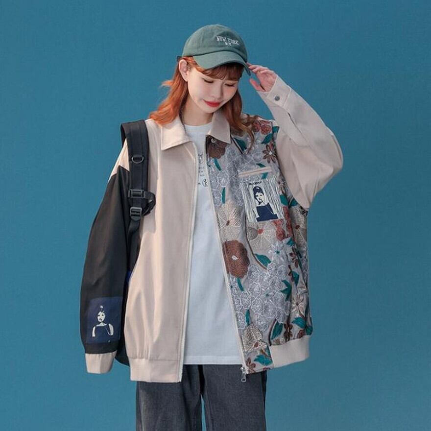 人気の花柄刺繍のストリート系ジャケットです。
