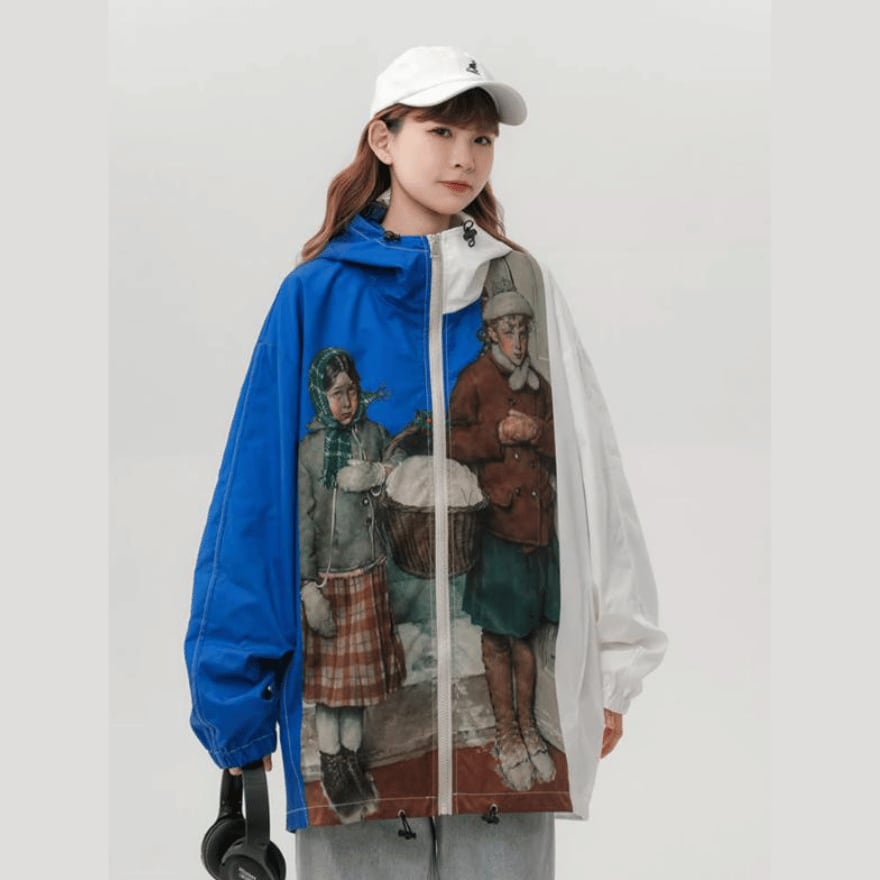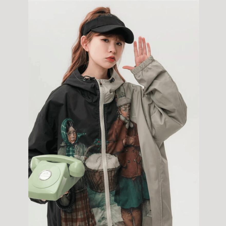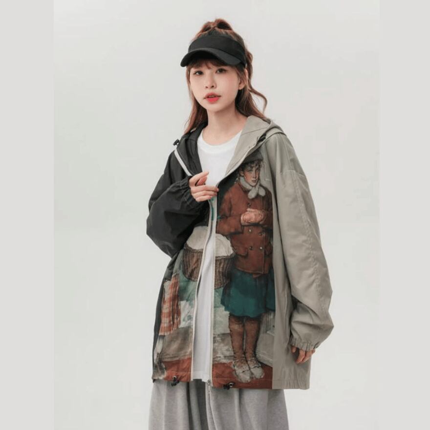 サブカル 服 地雷系 通販 パーカー 油絵風 プリント柄 普段着使い ゆったり 闇かわいい バンギャ