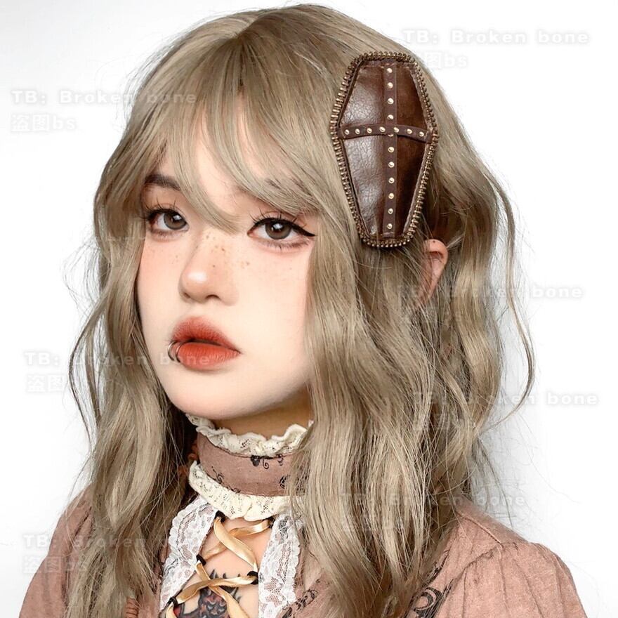 Broken boneオリジナル、レトロクラシカルなスチームパンク風のPUレザーの十字架ヘアアクセサリーです。