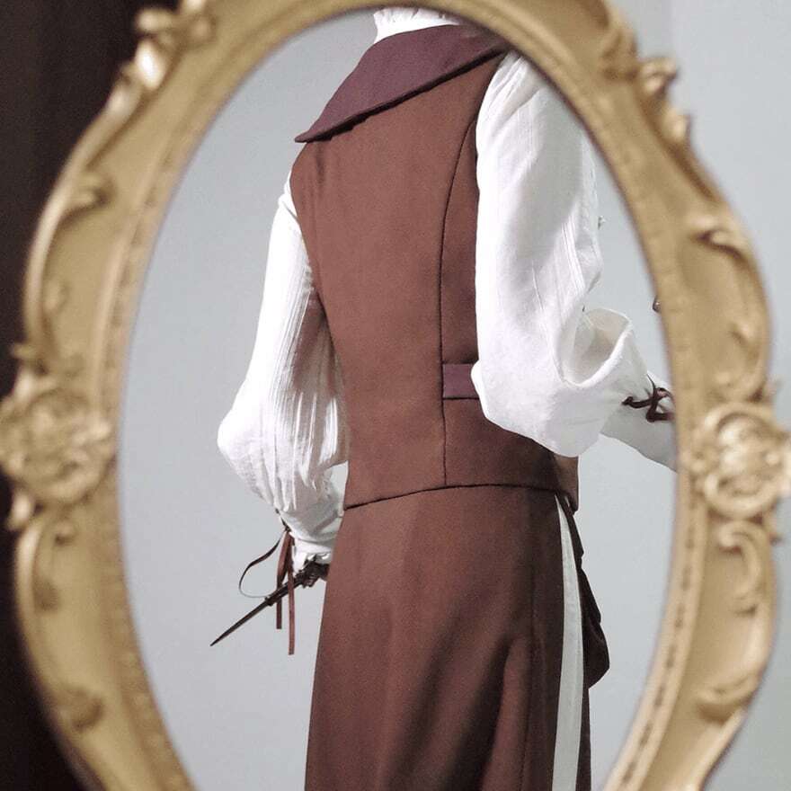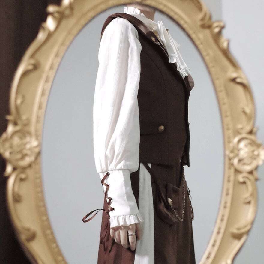 セット内訳はクロップパンツ、ベスト、長袖シャツ、ネックリボンの4点です