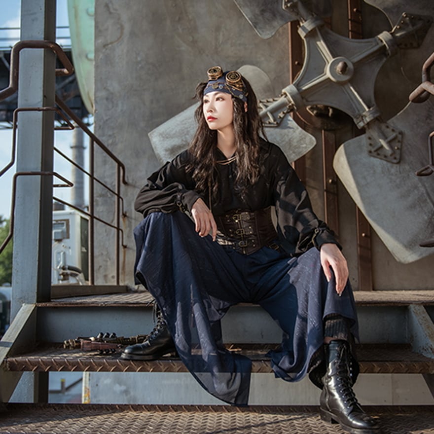 電脳異世界を表現するゴスロリファッションの一つ、スチームパンク(スチパン)パンツです