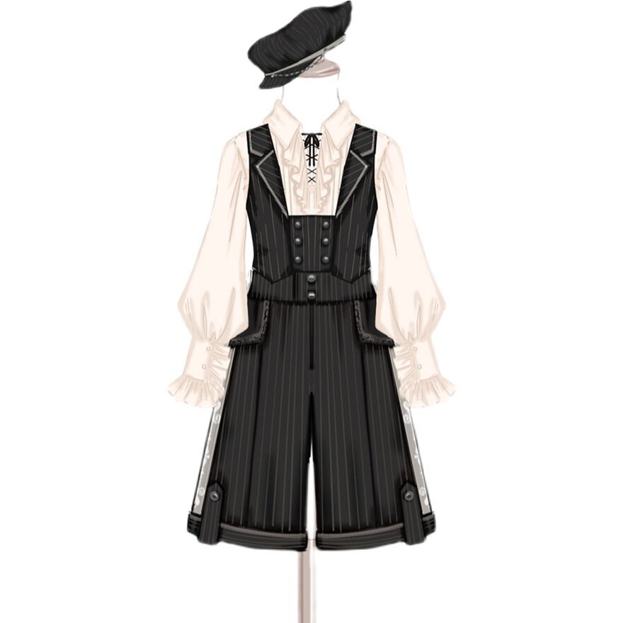セット内訳はドレスシャツ、ピンストライプのベストとハーフパンツです