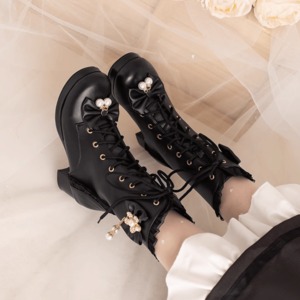 サブカル 服 地雷系 通販 ブーツ ショートブーツ ヒール高5cm ガーリー 甘め ゆめかわ ロリータファッション lolita