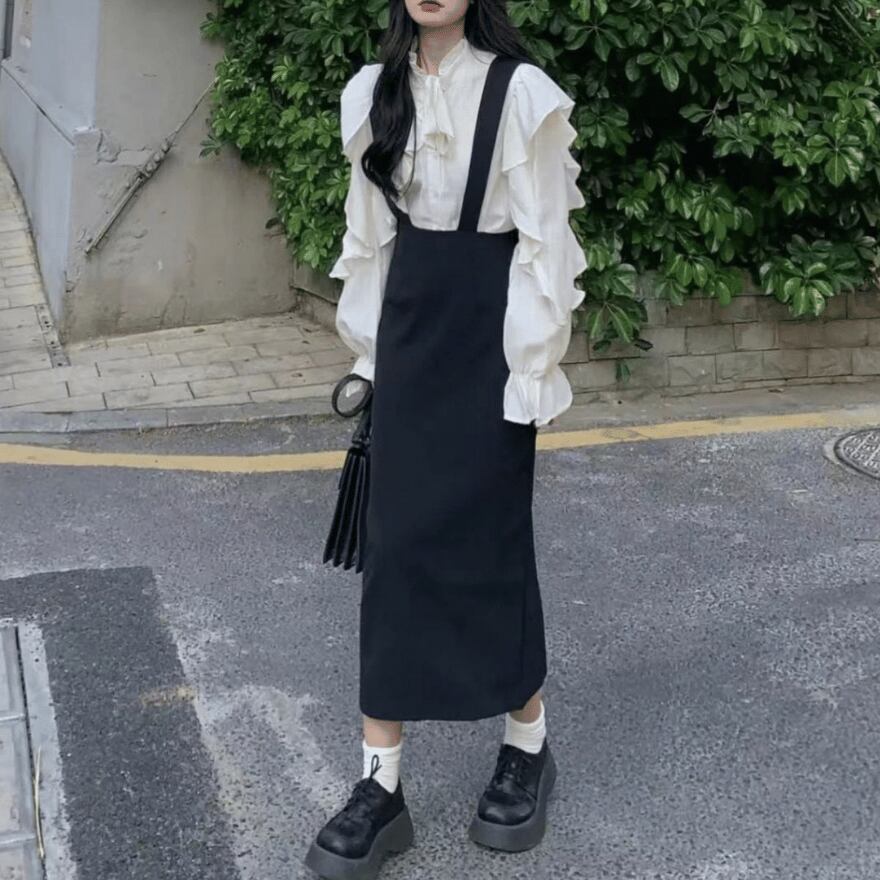 サブカル 服 地雷系 通販 セットアップ ブラウス ロング スカート スリット入り 大人きれいめ 原宿スタイル やみかわ インディーズ