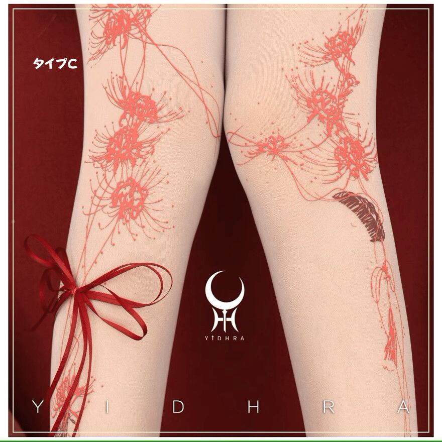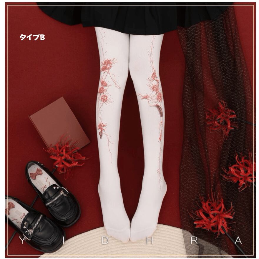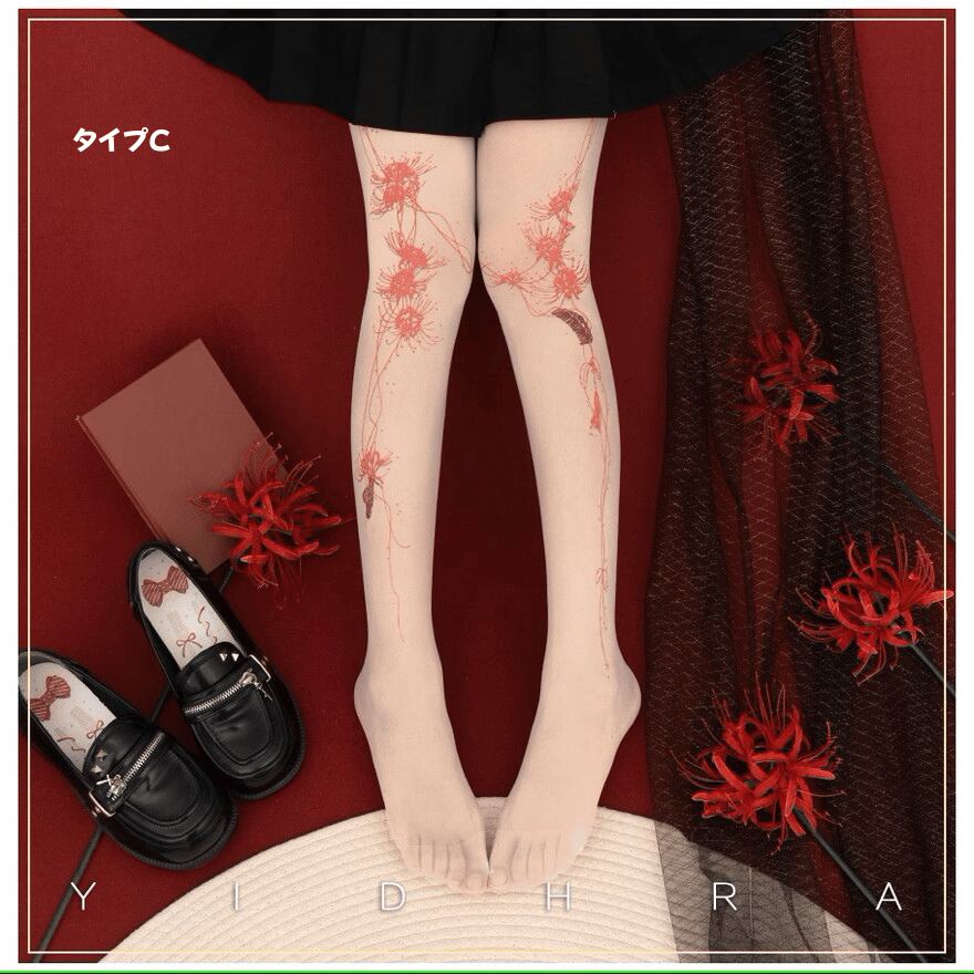 ちょっぴり病みかわいい彼岸花柄のゴスロリストッキングです。