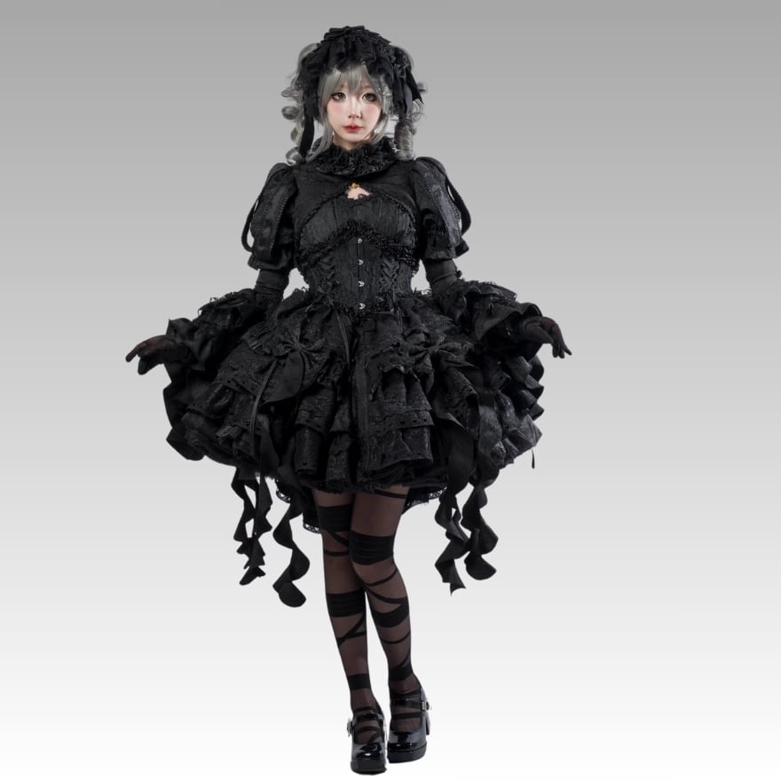 ゴスロリ セットアップ ジャンパースカート トップス ガードル 豪華 大人ゴシック 闇かわいい ロマンティック ロリータファッション lolita|天使と悪魔