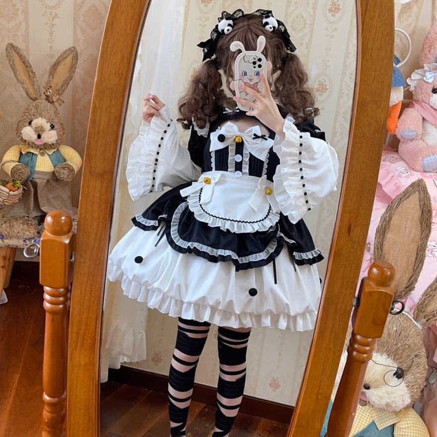 サブカル 服 地雷系 通販 ワンピース メイド服 中華ロリータ トランペットスリーブ ソフトロリータ セミロリ ガーリー 甘め インディーズ量産
